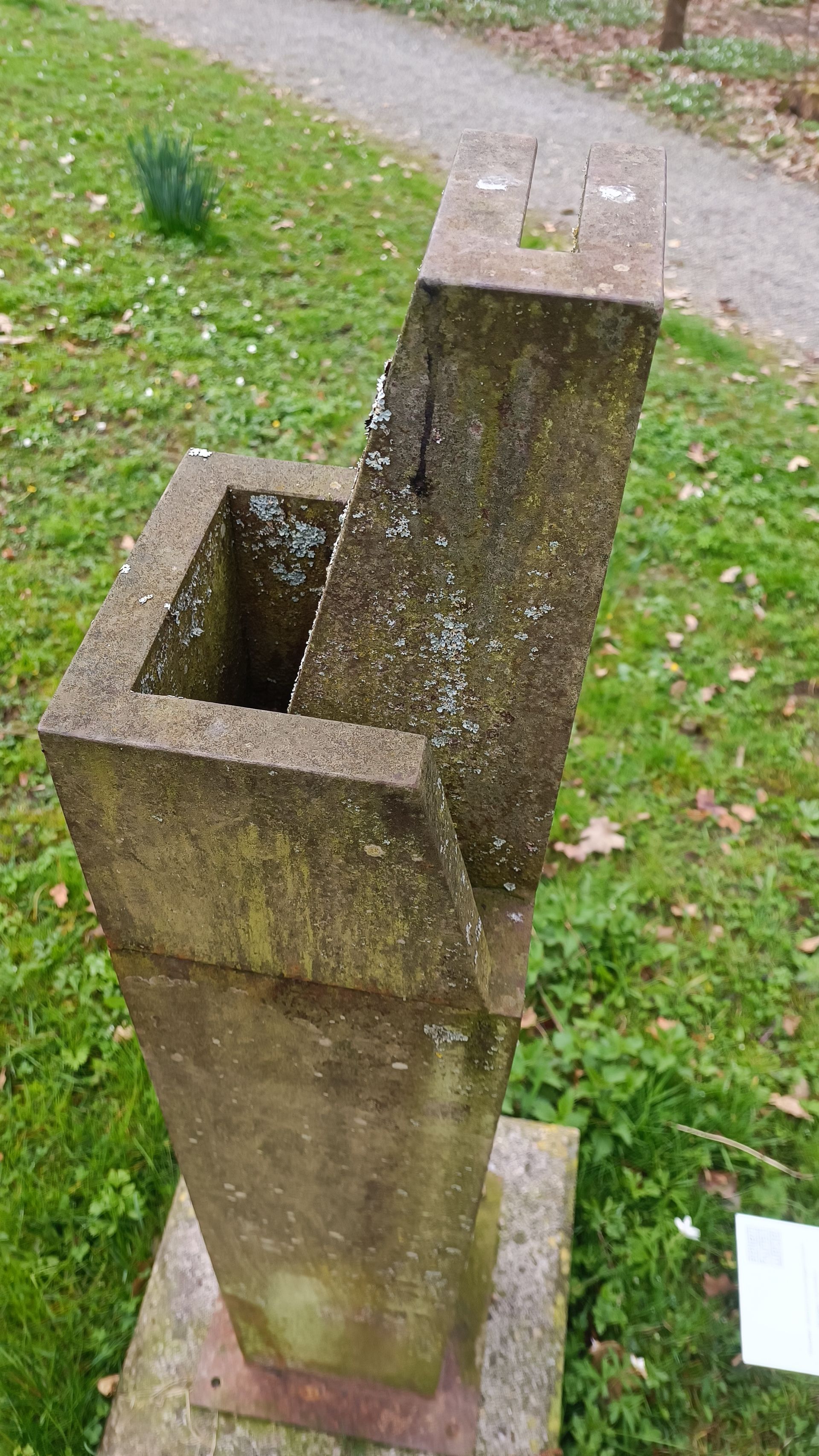 »Architektur« hat Emmenegger-Kanzler diese streng ortogonale, an Wänden orientierte Skulptur genannt. Sie basiert auf Baustrukturen von Architektur, auf Wänden, Innenräumen und schafft andeutungsweise ein Verhältnis zwischen Körper und Raum, zwischen Leerraum und Masse. Die Stele ist eine der ersten Eisenskulpturen des Künstlers, die er selbst als architektonischen Gedankenraum, nicht direkt, sondern eher als Anleitung um mit den Augen darin spazieren zu gehen, bezeichnet.